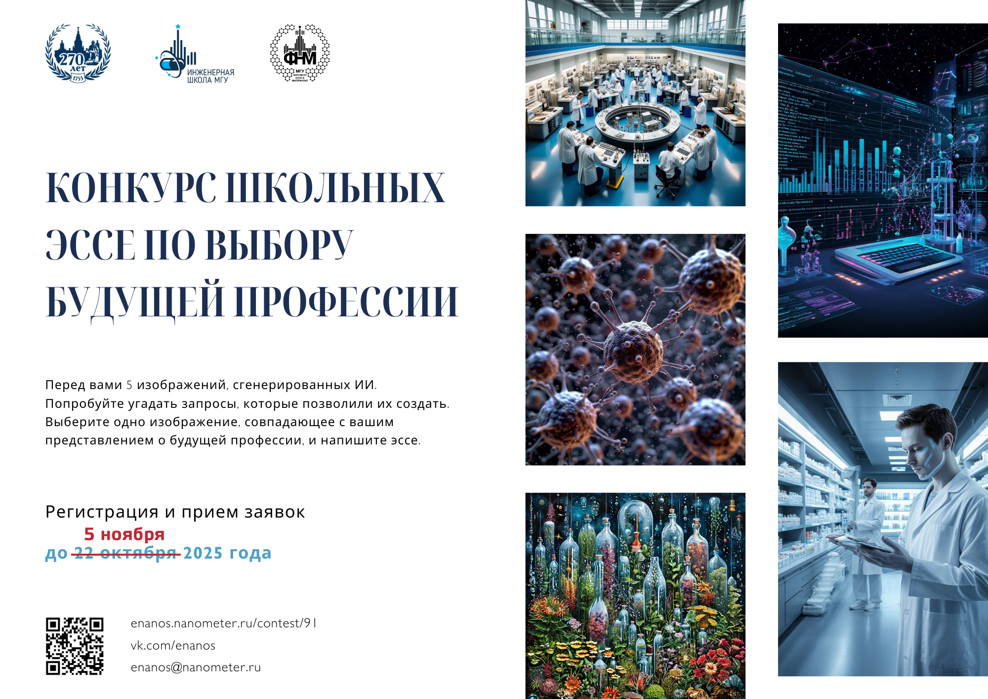 Прием заявок на конкурс школьных эссе по выбору будущей профессии, организованный Передовой Инженерной Школой Московского государственного университета имени М.В.Ломоносова (ПИШ МГУ), продлен до 23:59 мск 5 ноября.